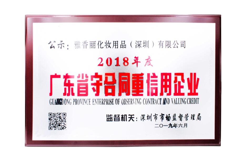 2018年度雅香麗被評為廣東省守合同重信用企業(yè)
